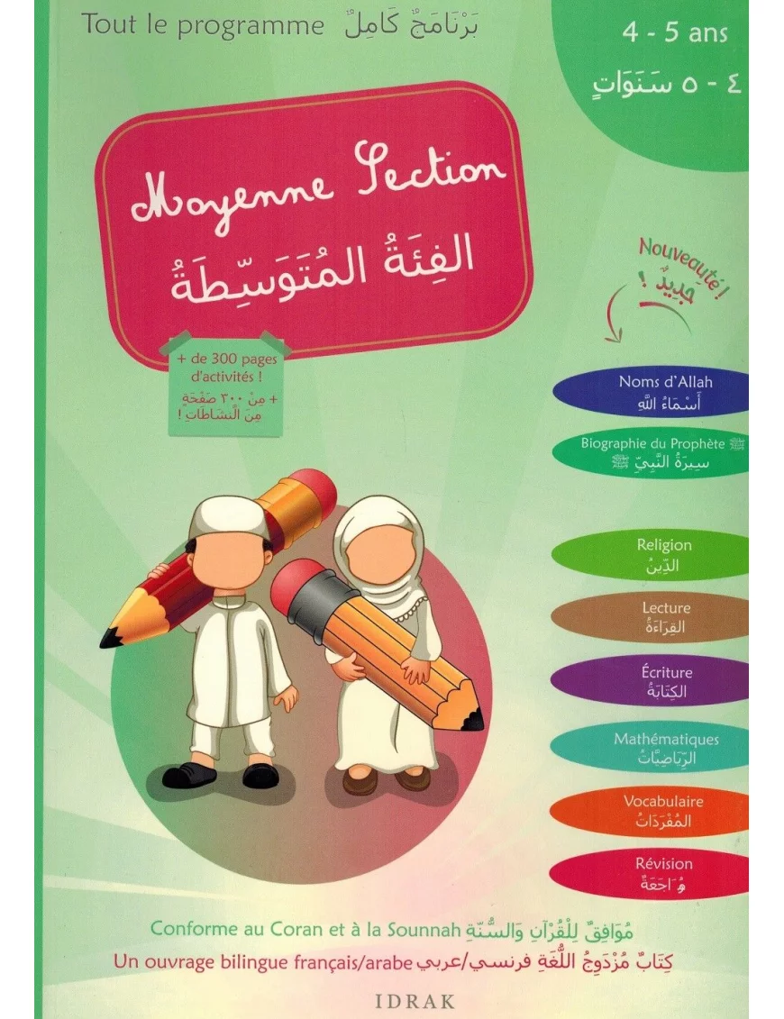 Moyenne section - al-fi'atu al-moutawassitah - Tout le programme - 4/5 ans - Bilingue français/arabe - Idrak favorite_border Ajouter à mes favoris favorite Supprimer de mes favorisProgramme complet.