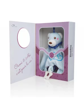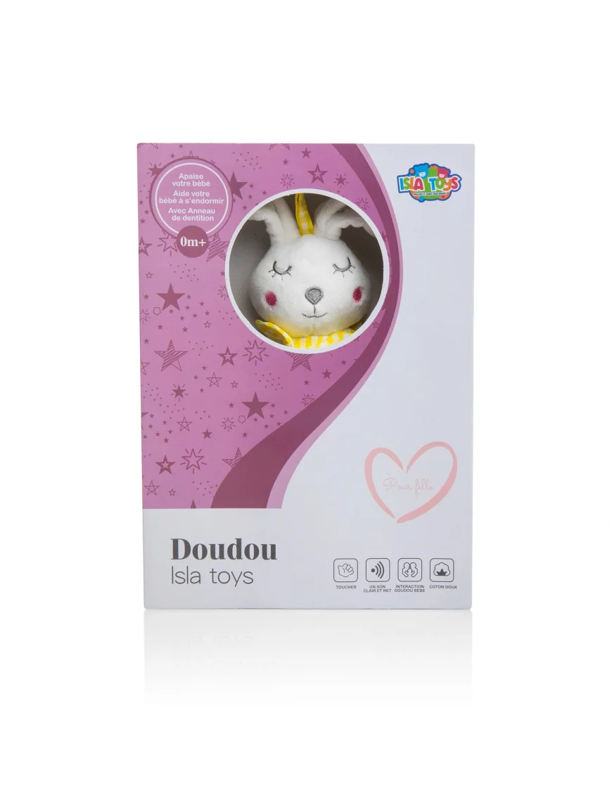 Nounours Oumi Abi - IslaToys favorite_border Ajouter à mes favoris favorite Supprimer de mes favorisOffrez un moment de pure tendresse à votre enfant avec notre adorable peluche lapin confectionnée en coton 100% biologique. Chaque étreinte devient un instant unique avec la tendre inscription...