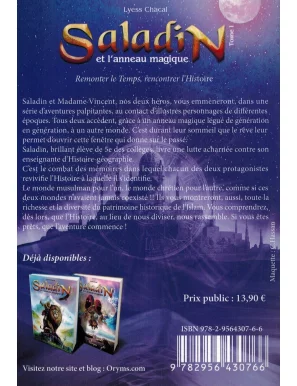 Saladin et Madame Vincent, nos deux héros, vous emmèneront, dans une série d’aventures palpitantes, au contact d’illustres personnages de différentes époques. Tous deux accèdent, grâce à un anneau magique légué de génération en génération, à un autre monde. C’est durant leur sommeil que le rêve leur permet d’ouvrir cette fenêtre qui donne sur le passé. Saladin, brillant élève de 5e des collèges, livre une lutte acharnée contre son enseignante d’Histoire-géographie. C’est le combat des mémoires dans lequel chacun des deux protagonistes revivifie l’Histoire à laquelle il s’identifie. Le monde musulman pour l’un, le monde chrétien pour l’autre, comme si ces deux mondes n’avaient jamais coexisté !! Ils vous montreront, aussi, toute la richesse et la diversité du patrimoine historique de l’Islam. Vous comprendrez, dès lors, que l’Histoire, au lieu de nous diviser, nous rassemble. Si vous êtes prêts, que l’aventure commence !