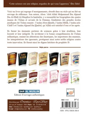 Voici un livre qui regorge d’enseignements, abordé dans un style qui en fait un ouvrage de référence. Son auteur, Abou ‘Abd Allah Mohammad Ibn Ahmad Ibn Al-Hâdî Al-Maqdîssî le hanbalite, y a rassemblé les biographies des quatre imams de l’Islam et savants de la Oumma, fondateurs des grandes écoles juridiques de l’Islam sunnite : l’imâm Abou Hanîfa, l’imâm Mâlik, l’imâm ach-Châfî‘î et l’imâm Ahmad ibn Hanbal, qu’Allah soit satisfait d’eux et les agrée.