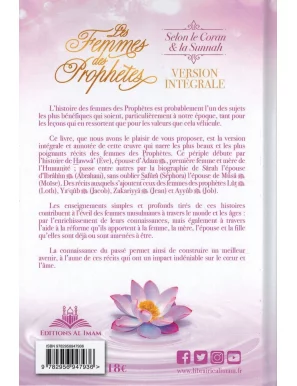Ce livre, que nous avons le plaisir de vous proposer, est la version intégrale et annotée de cette œuvre qui narre les plus beaux et les plus poignants récits des femmes des Prophètes. Ce périple débute par l’histoire de Hawwâ’ (Ève), épouse d’Âdam, première femme et mère de l’Humanité ; passe entre autres par la biographie de Sârah l’épouse d’Ibrâhîm (Abraham), sans oublier Safûrâ (Séphora) l’épouse de Mûsâ (Moïse). Des récits auxquels s’ajoutent ceux des femmes des prophètes Lût (Loth), Yacqûb (Jacob), Zakariyyâ (Zacharie) et Ayyûb (Job).