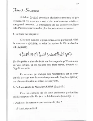 Nous vivons une triste époque, où une grande partie des musulmans souffrent d’une crise identitaire, engendrée par leur méconnaissance de l’Histoire de la civilisation arabo-musulmane. Suite à la sortie dans le monde de l’édition arabophone de l’ouvrage intitulé : Â’ishah la mère des croyants, un livre complet sur le sujet et dont une trentaine de savants firent les éloges, nous avons décidé de l’adapter en français, d’après l’œuvre originale. Celle que les meilleurs de cette communauté nommaient ′′la mère des croyants′′ n’est autre que Â’ishah, l’épouse du sceau des Prophètes et fille de son illustre Compagnon Abû Bakr, son digne successeur.