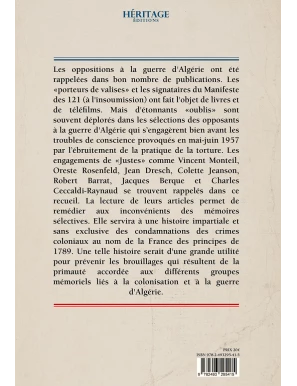 Les oppositions à la guerre d'Algérie ont été rappelées dans bon nombre de publications. Les "porteurs de valises" et les signataires du Manifeste des 121 (à l'insoumission) ont fait l'objet de livres et de téléfilms. Mais d'étonnants «oublis» sont souvent déplorés dans les sélections des opposants à la guerre d'Algérie qui s'engagèrent bien avant les troubles de conscience provoqués en mai-juin 1957 par l'ébruitement de la pratique de la torture. Les engagements de «Justes» comme Vincent Monteil, Oreste Rosenfeld, Jean Dresch, Colette Jeanson, Robert Barrat, Jacques Berque et Charles Ceccaldi-Raynaud se trouvent rappelés dans ce recueil. La lecture de leurs articles permet de remédier aux inconvénients des sélectives. Elle servira à une histoire impartiale et sans exclusive des condamnations des crimes coloniaux au nom de la France des principes de 1789. Une telle histoire serait d'une grande utilité pour prévenir les brouillages qui résultent de la primauté accordée aux différents groupes mémoriels liés à la colonisation et à la guerre mémoires d'Algérie.
