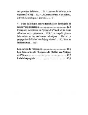Des premières conversions médiévales à l’ère coloniale, plus d’un millénaire d’une histoire des plus fascinantes est succinctement narré dans cet ouvrage qui s’attache à retracer les étapes majeures de la propagation de la religion musulmane entre le Sahara, l’océan Atlantique et le lac Tchad, dans cette partie du continent noir que l’on nommait alors le Soudan – une terre à la tradition islamique aussi riche et dynamique qu’originale. Y sont également présentés les grands personnages et royaumes de l’histoire islamique de l’Afrique de l’Ouest, du richissime empire du Mali de Mansa Mûsâ et des puissants Songhaïs au révolutionnaire sultanat de Sokoto de ‘Uthmân dan Fodio et aux autres audacieux conquérants et réformateurs du XIXe siècle.