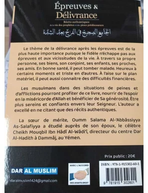 Les musulmans dans des situations de peines et d'afflictions pourront profiter de ce livre, nourrir de l'espoir en la miséricorde d'Allah et bénéficier de Sa générosité. Être plus sereins et confiants envers leur Seigneur. L'auteur a excellé en ne citant que des récits authentiques.