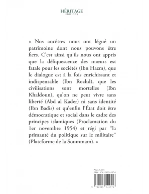 Nos ancêtres nous ont légué un patrimoine dont nous pouvons être fiers. C'est ainsi qu'ils nous ont appris que la déliquescence des mœurs est fatale pour les sociétés (Ibn Hazm), que le dialogue est à la fois enrichissant et indispensable (Ibn Rochd), que les civilisations sont mortelles (Ibn Khaldoun), qu’on ne peut vivre sans liberté (Abd al Kader) ni sans identité (Ibn Badis) et qu’enfin l’État doit être démocratique et social dans le cadre des principes islamiques (Proclamation du 1er novembre 1954) et régi par “la primauté du politique sur le militaire” (Plateforme de la Soummam).