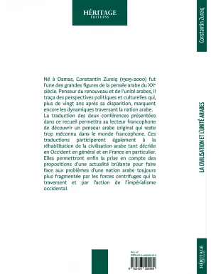 Né à Damas, Constantin Zureiq (1909-2000) fut l'une des grandes figures de la pensée arabe du XXe siècle. Penseur du renouveau et de l'unité arabes, il traça des perspectives politiques et culturelles qui, plus de vingt ans après sa disparition, marquent encore les dynamiques traversant la nation arabe. La traduction des deux conférences présentées dans ce recueil permettra au lecteur francophone de découvrir un penseur arabe original qui reste trop méconnu dans le monde francophone. Ces traductions participeront également à la réhabilitation de la civilisation arabe tant décriée en Occident en général et en France en particulier. Elles permettront enfin la prise en compte des propositions d'une actualité brûlante pour faire face aux problèmes d'une nation arabe toujours plus fragmentée par les forces centrifuges qui la traversent et par l'action de l'impérialisme occidental.