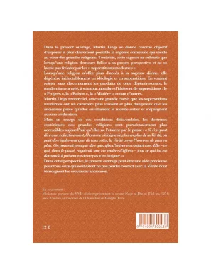 Dans le présent ouvrage, Martin Lings se donne comme objectif d’exposer le plus clairement possible la sagesse commune qui réside au cœur des grandes religions. Toutefois, cette sagesse ne subsiste que lorsqu’une religion demeure fidèle à sa propre perspective et ne se laisse pas frelater par les « superstitions modernes ».