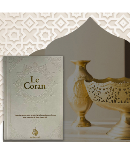Saint Coran avec grands caractères - phonétique - français - Tajwîd - QR Code - blanc doré (13,5 x 18 cm) - AlQosbah