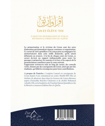 Carnet de suivi et de conseils : mémorisation du Coran, révisions et correction du Tajwid - Dar Al Qira'at