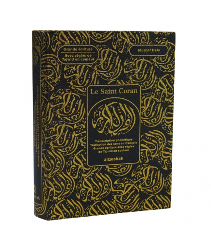 Le Saint Coran - noir doré - arabe/français/phonétique - Codes QR - règles de Tajwîd en couleur - 16 x 21,5 cm - AlQosbah