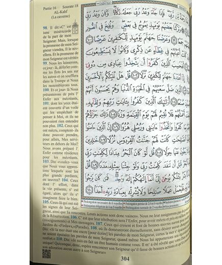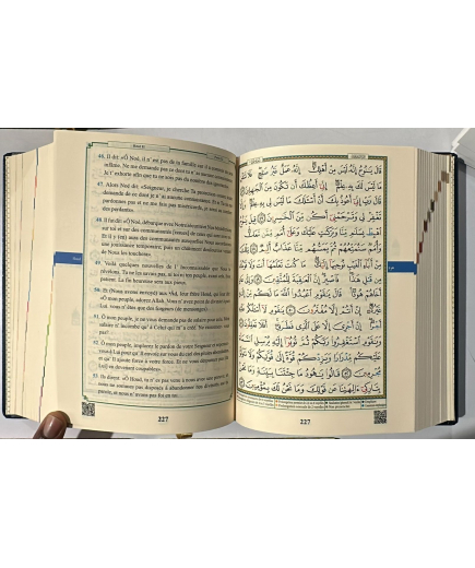 Le Saint Coran avec grands caractères - arabe/français/phonétique - Tajwîd en couleur et Vidéo CodeQR - 13,5 x 18 cm - AlQosbah