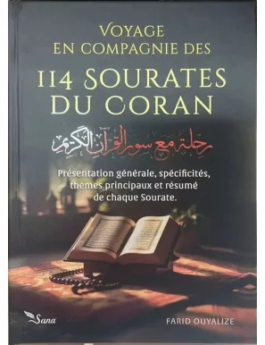 "Voyage en compagnie des 114 sourates du Coran" de Farid Ouyalize propose une présentation générale de chaque sourate, avec leurs spécificités, thèmes principaux et résumés. L’ouvrage adopte une approche thématique de l’exégèse coranique, reliant les enseignements du Coran à leur contexte historique et à la vie contemporaine. Une ressource précieuse pour mieux comprendre la structure, le sens et la portée du texte sacré.