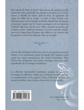 Que sait-on de l’âme au fond ? Que sait-on du moment où elle sortira du corps, quand elle sera amenée à une autre vie ? Ce livre expose et détaille les étapes après la mort, les questions des anges, la réalité de la tombe, et enfin le Jour dernier avec l’aboutissement vers la Paradis ou l’Enfer. L’auteur s’appuie sur les Textes coraniques et de la Sunna du Prophète (SWS) pour décrire cette réalité qui échappe à notre condition humaine. Il en tire aussi des conclusions sur la façon dont l’homme doit utiliser sa vie terrestre afin de garantir sa vie de l’au-delà qui, elle, est éternelle. L’imam Ibn Al Qayyim Al Jawziyya est l’un des grands savants de l’islam, il s’est surtout distingué dans son étude approfondie de la mystique.