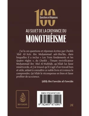 Sâlih ibn Fawzân al-Fawzân a donné son approbation au livre 100 questions et réponses au sujet de la croyance du monothéisme. Cette recommandation venant d'un savant reconnu donne du crédit à ce livre. Elle confirme en effet la qualité de son contenu et de ses explications.