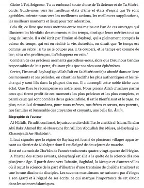 L’ouvrage invite le lecteur à renouer avec la conscience du temps sacré — ces instants choisis où le croyant peut multiplier ses prières, ses invocations et ses œuvres de bien. En suivant le rythme du calendrier musulman, Al-Bayhaqî nous guide vers une spiritualité plus vivante et ancrée dans le cycle lunaire.