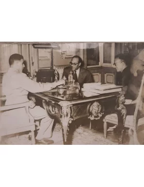 * Rare photo de Malek Bennabi qui se documente sur les conférences de Colombo et de Bogor en compagnie du général Mohamed Najib en juillet 1954