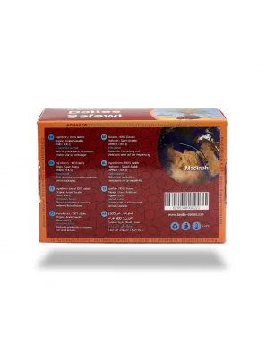 Les dattes Safawi arborent une couleur foncée, presque noire. Elles font partie des variétés les moins sucrées et les plus riches en fibres, tout en étant très savoureuses, avec un arrière-goût de sirop d’érable et de caramel. Elles séduiront les palais les plus fins. Elles sont également un précieux allié santé, car elles facilitent le transit.