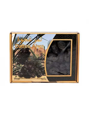 Les dattes Ajwa, originaires de Médine en Arabie Saoudite, sont réputées pour leur saveur unique et leur texture moelleuse. Leur couleur presque noire et leur forme arrondie les distinguent des autres variétés.