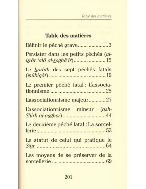 Ces péchés ont été appelés al-mûbiqât, c’est-à-dire al-muhlikât, car ils causent la perte de celui les commet et le conduisent en Enfer, que Dieu nous en préserve ! Le présent livre expose les définitions données par les érudits des différentes catégories de péchés, leurs divergences à ce sujet ; il présente ensuite les sept péchés dits mûbiqât, les explique et met en relief leur champ d’application en s’appuyant sur les commentaires des doctes.