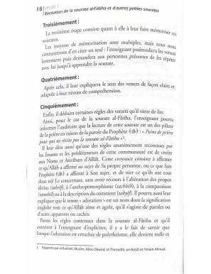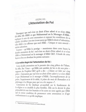 Le livre énumère les piliers de l'islam ainsi que ceux de la foi. Puis, il donne de nombreuses informations relatives à la prière. On apprend notamment les conditions de la prière, les actes recommandés et ce qui est obligatoire. Pour ce qui est du tashahoud, il est aussi présent dans cet ouvrage. Vous pourrez donc le mémoriser et comprendre son sens.