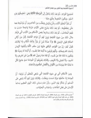 Dans ce commentaire de dourous mouhima, Cheikh Ibn Baz commence d'abord par parler de la sourate Al Fatiha, qu'on récite dans chaque unité de prière. Il explique aussi l'attestation de foi, fondamentale en islam. Il mentionne notamment les conditions de cette formulation, car il ne suffit pas de la prononcer, il faut la comprendre et y croire avec conviction.