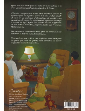 Quels meilleurs récits pouvons-nous lire à nos enfants si ce n’est les histoires des Prophètes cités dans le Coran. Orientica a le plaisir de mettre entre vos mains ce livre de référence pour les enfants à partir de 5 ans. Le style simple et clair et les centaines d’illustrations de qualité vous permettront de revivre les histoires des Prophètes et des sages à travers les âges, depuis la Création d’Âdam et Hawwâ’ et leur histoire avec Iblîs, jusqu’au dernier des Prophètes, Mohammed (paix et salut sur lui). Les histoires se succèdent les unes après les autres de façon naturelle et dans un ordre chronologique. Nous espérons que ce livre très profitable, aussi bien pour les petits que pour les grands, vous permettra de passer d’agréables moments en famille.