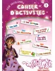 La couverture, dans des tons roses et violets, met en scène une jeune fille souriante en tablier décoré de gâteaux, symbole de douceur et d’apprentissage joyeux. Les encadrés colorés présentent les différents types d’activités proposées, illustrant parfaitement l’esprit ludique et bienveillant du cahier.