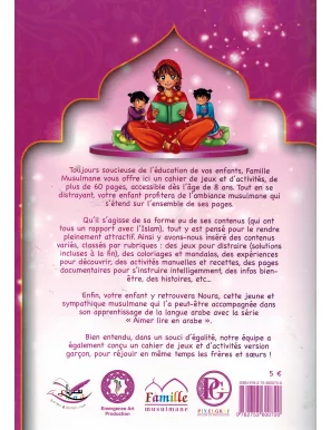 Ce cahier d’activités encourage les jeunes filles à développer leur créativité, leur sens de l’organisation et leur connaissance de l’islam à travers des exercices variés et amusants. Chaque page combine l’éveil intellectuel, la détente artistique et la spiritualité, dans un format accessible et joyeux.