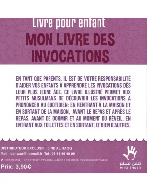 En tant que parents, il est de votre responsabilité d’aider vos enfants à apprendre les invocations dès leur plus jeune âge. Ce livre illustré permet aux petits musulmans de découvrir les invocations à prononcer au quotidien: En rentrant à la maison et en sortant de la maison, avant le repas et après le repas, avant de dormir et au moment du réveil, En entrant aux toilettes et en sortant, et bien d’autres.