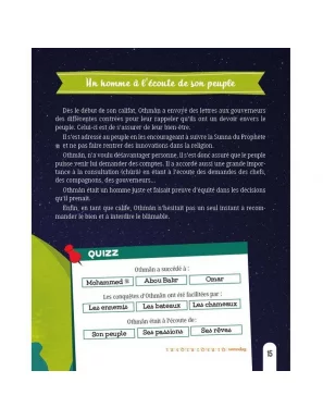 Chère maman, cher papa, n'hésitez pas à accompagner votre enfant lors de ce voyage au coeur de l'extraordinaire histoire, pleine d’enseignements, d'Omar ibn al-Khattâb. Vous-mêmes en apprendrez beaucoup !