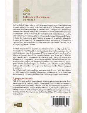Ce livre du Dr El-Qarni offre un trésor de joyaux resplendissants destiné à toutes les femmes: Il contient en effet le Verset sans équivoque, le hadith véridique, la parole tranchante, l'histoire symbolique, le vers émouvant, l'idée pertinente, l'expérience instructive. Lis bien cet ouvrage afin qu'il terrasse en toi les derniers retranchements du chagrin, les fantômes des soucis, les cauchemars de la peur et du stress. Feuillette ce recueil qu'il t'aide à purifier ta mémoire de l'amas des illusions et de l'accumulation des obsessions, et qu'il t'indique les vergers de la quiétude, le jardin du bonheur, les demeures de la Foi, les parcs de la joie et les paradis de la réjouissance puisse Allah, par Sa générosité, te rendre heureuse ici-bas et dans l'Au-delà, car il est certes Généreux et Glorieux.