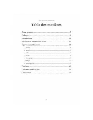 Ce livre aborde sans détours les sujets qui font débat aujourd'hui. L'auteur traite notamment des questions du voile, du travail féminin, du divorce et d'autres thèmes polémiques de manière objective. Pour se faire, il s'appuie, bien évidemment, sur les enseignements islamiques.