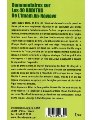 Il est vraiment un livre béni, pour lequel Allah a décrété la popularité et l'expansion. Ainsi le grand savant, le shaykh Muhammad Ibn Sâlih Al Uthaymîn a couronné cette œuvre par une exégèse qui s'inspire des commentaires anciens et qui est conforme à l'esprit de notre époque. Apres chaque Hadith, il donne une explication simple et aisée, ensuite il en cite les leçons principales, ce qui en rend l'exégèse précieuse et très bénéfique malgré sa brièveté. Nous implorons Allah de faire profiter l'ensemble des musulmans de cette exégèse, II a -Exalté est-ll- pouvoir sur toute chose. Qu'Allah prie sur notre Bien-Aimé Muhammad, sa famille et ses compagnons, et leur donne la paix. Louange à Allah Seigneur des univers.