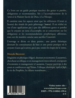 Ce livret est un guide pratique succinct des gestes et paroles, obligatoires et recommandées, liés à l'accomplissement de la 'umra a la Maison Sacrée de Dieu, à La Mecque. Il contient tous les aspects ainsi que les références (Coran et Sunna) des rituels du petit pèlerinage ('umra). Il est réalisé en vue d'une application pas à pas des différents gestes et paroles que le croyant est tenu d'accomplir, en se concentrant sur les obligations et les recommandations prophétiques afférentes, tout ceci de manière concise sans sacrifier l'essentiel.