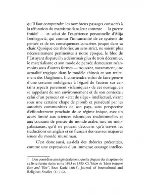 L'Islam entre Orient et Occident est une œuvre magistrale qui ne laissera aucun lecteur intéressé par les choses de l'esprit indifférent. À la fois travail remarquable de recherche multidisciplinaire, survol de l'histoire de l'humanité, étude comparative des prémisses fondamentales et des conséquences sociales, juridiques, politiques, culturelles, psychologiques et même artistiques des grandes idéologies concurrentes de ce monde, cet essai philosophique unique en son genre est sans conteste l'un des ouvrages les plus marquants - et surtout, originaux – de la pensée islamique contemporaine.