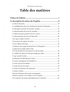 🔎 Une approche basée sur les preuves et la sagesse prophétique Chaque sujet est traité avec rigueur, en s’appuyant sur les hadiths authentiques et les avis des savants, tout en clarifiant les divergences. Ibn al-Qayyim ne se contente pas d’énoncer des règles : il explique les raisons, les sagesses et les objectifs spirituels du jeûne, afin que le lecteur puisse en retirer un bénéfice concret dans sa pratique quotidienne.