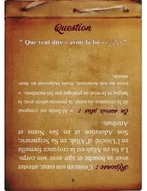 Les informations relatives au jeu : Les 101 questions contenues dans ce jeu et relatives à la Croyance et au Dogme sont tirées essentiellement des ouvrages des grands savants reconnus (anciens et contemporains). La partie « En savoir plus » vous fournit plus de détails ainsi que les preuves puisées dans le Coran et la Sunna.