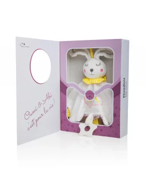 Optez pour un cadeau qui allie élégance, douceur et fonctionnalité. Notre peluche lapin est le choix parfait pour accompagner votre enfant dès ses premiers jours. Commandez la vôtre dès aujourd'hui pour offrir des moments de douceur et de complicité à votre bébé.