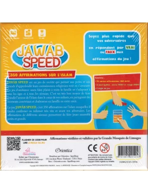 JAWÂB SPEED est un jeu de société qui permet aux petits et aux grands d'approfondir leurs connaissances religieuses tout en s'amusant. Ce jeu d’ambiance saura faire plaisir à toute la famille en s'adaptant à tous les âges et à tous les niveaux.