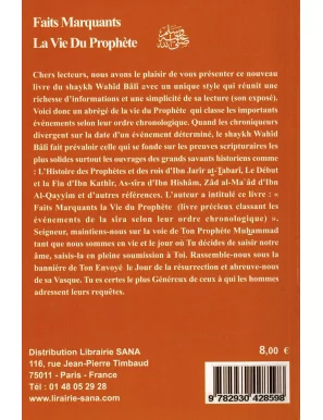 Chers lecteurs, nous avons le plaisir de vous présenter ce nouveau livre du Shaykh Wahîd Bâlî avec un style unique qui allie une pléthore d'informations et une simplicité dans sa lecture (son exposé). Voici donc un abrégé de la vie du Prophète qui classe les événements importants selon leur ordre chronologique.