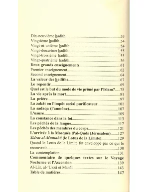 Après cela, Gabriel l'emmena dans les Cieux sur le même animal. Ce que Dieu a accordé au Prophète, à travers ce voyage est un don qu'Il n'a donné à nul autre que lui. Le Prophète a traversé un à un les cieux et y a rencontré les autres Prophètes et Messagers.