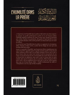 L'humilité dans la prière est un ouvrage que chaque croyant devrait avoir. En effet, cette qualité est indispensable pour accomplir correctement cet acte. Car, c’est le moment où plus rien ne compte si ce n’est votre soumission à Allah. Ainsi, à la lecture de ce livre vous saisirez l’importance de cet état d’esprit. Et, les fruits qui en découle.