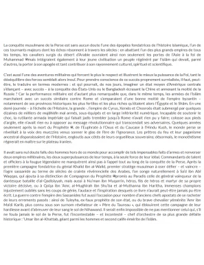 Agha Ibrahim Akram raconte la conquête musulmane de la Perse à travers cet ouvrage, une histoire incroyable. Vous découvrirez comment les musulmans ont vaincu l'un des plus grands empires du monde. En plus, cet ouvrage montre comment la foi peut donner une force énorme aux hommes qui croient vraiment en Allah.