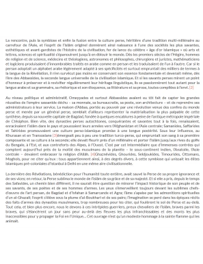Les Perses qui sont devenus musulmans ont beaucoup aidé la civilisation islamique. Ils ont notamment transmis leurs connaissances et leur culture. Ils ont également aidé l'islam à devenir encore plus fort dans les domaines de la science, de la culture et de la spiritualité.