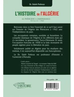 Le livre "Histoire de l'Algérie : des Phéniciens à l'indépendance" par le Dr. Saleh Ferkous, professeur à l'université de Annaba, offre une analyse exhaustive de l'histoire algérienne depuis 814 avant J.-C. jusqu'à 1962. Cet ouvrage académique détaille les différentes périodes, des premières civilisations comme les Phéniciens à travers les ères romaine, islamique, ottomane, jusqu'à la colonisation française et la lutte pour l'indépendance, offrant une perspective riche et nuancée sur les événements qui ont façonné l'Algérie moderne.