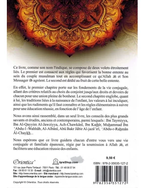 Ce livre, comme son nom l’indique, se compose de deux volets étroitement liés: le premier, est consacré aux règles qui favorisent la bonne entente au sein du couple musulman tout en accomplissant ce qu'Allah ('Azza wa Jalla) et Son Messager (SWS) agréent. Le second, est dédié au fruit de cette belle entente.