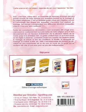 Voici, cher frère, chère sœur, un ensemble de réponses émanant des plus grands savants de notre époque aux questions portant sur le mariage et ses règles religieuses. C’est un véritable guide classé par chapitre suivant la chronologie des étapes par lesquelles cheminera tout aspirant au mariage. Ses thèmes correspondent aux différentes situations auxquelles chacun, chacune, sera confronté.