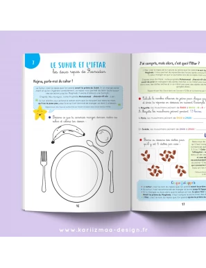 Découvrez un cahier d’activités sur le thème du Ramadan pour les enfants âgés de 6 à 8 ans avec la présence d’un(e) adulte pour lire les consignes. Vos enfants y retrouveront Professeur Qamar et Najma, deux petits personnages qui les accompagneront dans tout le cahier. Ils apprendront ainsi à aimer le Ramadan au travers d’activités en tout genre : écriture, graphisme, tawhid, aqida, coloriage, graphisme, dénombrement…