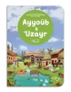 La couverture du livre Ayyoub & Uzayr présente un style illustré coloré et tendre. Deux personnages stylisés représentent les prophètes respectifs, chacun dans un décor qui reflète son histoire : le désert pour Ayyoub, et les ruines pour Uzayr. Le titre est mis en évidence au centre, dans une typographie ludique adaptée aux enfants.